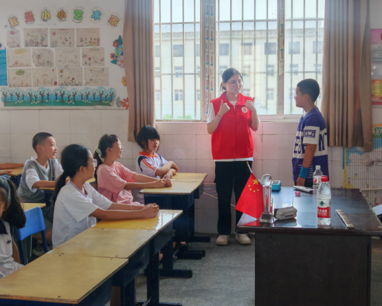 “感谢应城市、郎君镇各位领导及中心小学对我们团队暑期志愿支教活动的信任与支持,我们将用扎实的专业知识和全心全意的付出陪伴孩子们度过一个难忘又充实的暑假。”华韵心文化志愿服务队队长在发言中讲到,本次托管班将以“看中国”系列课程为主线,充分发挥团队成员们的专业特色以及学院优势,在课程安排中融入双语教学,还开设有安全教育、环保卫士、健康卫生知识、科学实验、艺术体验和素质拓展等特色课程体系。随后,十余名志愿者一一进行自我介绍,并为同学们带来了“助学礼包”。
