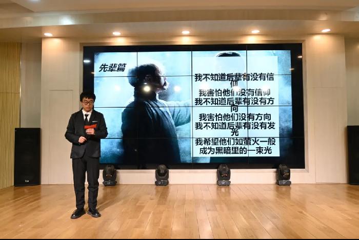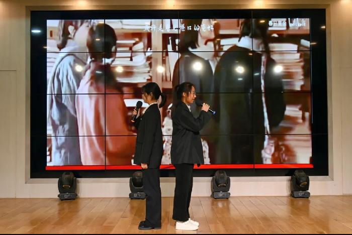 两位同学通过自己剪辑视频,现场扮演赵世炎和夏之栩两位党员角色进行对话配音,让在场观众都了解到一份战争年代的美好爱情故事,同时也感受到了战争的残酷和革命的不易,引发观看者心中阵阵波澜。