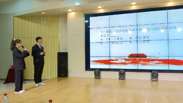 节目汇演中,插入了红色知识有奖竞答环节,题目内容集知识性、教育性为一体,围绕党的二十大精神、百年党史等展开提问。