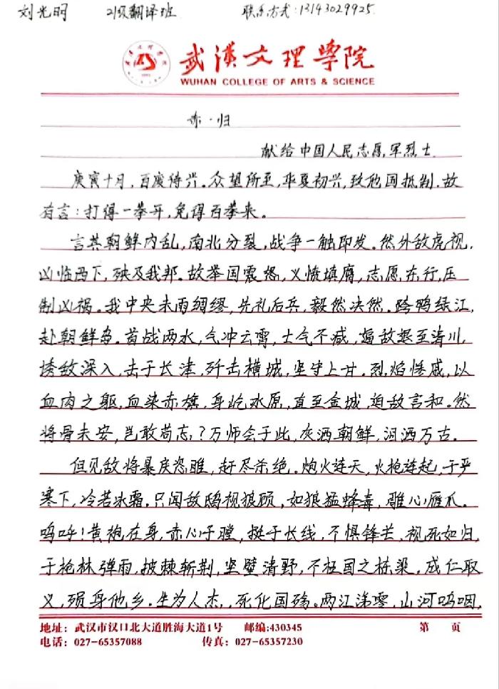 刘光明同学在节目准备前将自己较为厚重远长的声音导录作为革命先辈一角,又在表演现场用自己相对于稚嫩坚定的声色作为革命后辈展示在大众面前,作品中的文稿内容皆是一人完成,其节目形式新颖,同时通过革命先辈的敦敦教诲正确引导了现代青年肩负的历史责任和使命。