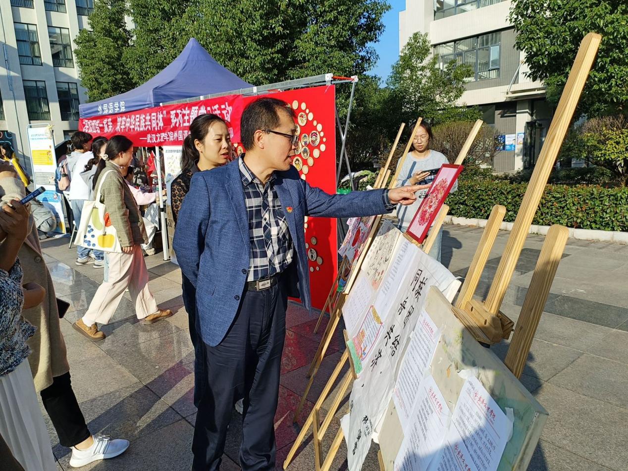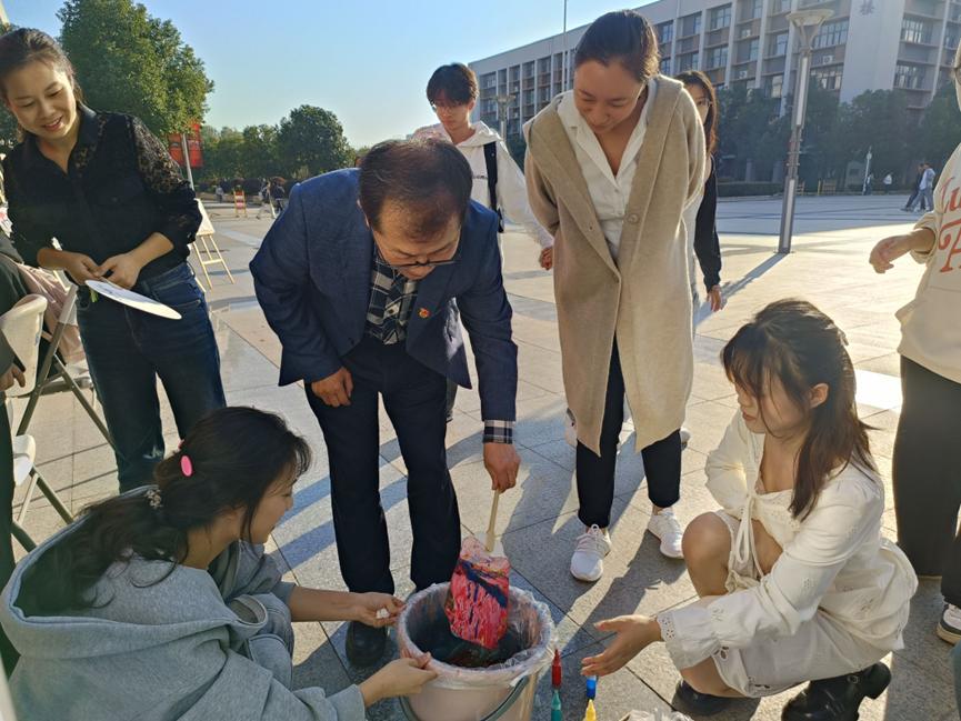 风息雾散,在一个阳光灿烂的下午,活动逐渐拉开帷幕。此次活动面向全校师生,创新的活动,精美的设计,细致的介绍,以及有趣的小礼品吸引了众多学生的积极参与,得到了师生的热情响应,校党委书记杜永成老师也来到活动现场参与其中。老师和学生们一起参与进来:参与主体板签到活动后,参考了展有详细玩法介绍的易拉宝,在不“漆”而遇(漆艺) ,年轮“绘”国(年轮片作画),“字”成一家(毛笔书法)三项游戏设置中任选参与,参与后可以领取精美小礼品一份。与此同时,yl9193永利集团学生的主题作品被大家驻足欣赏,获得声声称赞。