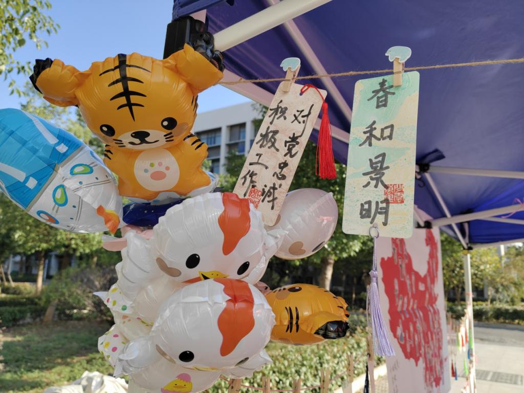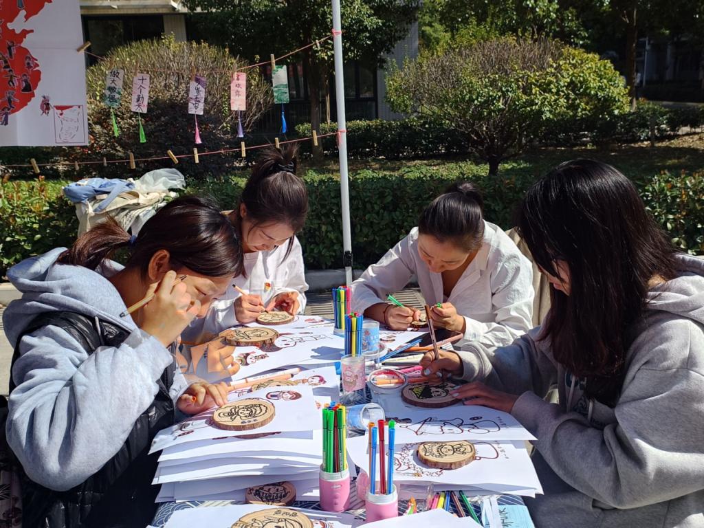 年轮“绘”国: 56个民族,服饰斑斓各异,却共同绘就了多彩中华。活动伊始需挑选一个年轮片,每个年轮片上分别绘制着56个民族人物的卡通图案。参与的同学任选一个年轮片根据参考图案进行绘画上色,卡通人物的原型显现出来后,则前往旁边带有中国地图轮廓的展示板面前,找到自己所画的民族所对应的位置粘贴上去。随着活动的推进,有年轮片所汇成的中国地图也陆续完成,一副壮观的“中国”呈现在大众面前。此项游戏将同学们都相聚在一起来共同描绘各民族风采,在艺术的交融中,我们心手相连,共筑中国梦,不仅展现了文化的多样性,更彰显了中华民族团结一心的力量。
