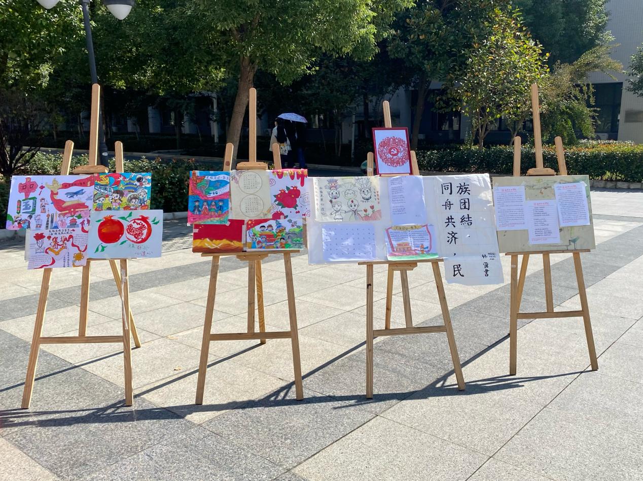 “字”成一家:书法挥洒间,尽显民族魂。笔走龙蛇,墨香四溢,彰显中华民族独特韵味与风采。同学到达活动现场后,寻找工作人员领取宣纸,毛笔等书写工具。在指定区域铺好宣纸,调整笔墨至适宜状态。静心凝神,构思书写内容,挥毫泼墨,一气呵成完成书法作品。最后,将作品晾干并展示。这些书法作品不仅是学生们风采的展示,更是一次民族团结的生动实践。学生作品通过笔墨弘扬了民族团结的主旋律,传播了正能量。
