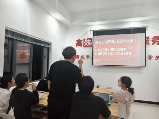4月10日至17日,在国家安全知识竞赛环节,学院采用“线上+线下”相结合的学习模式。活动前期,借助学习通平台发布系统的国家安全知识学习资料,并设置线上自测题,帮助学生夯实理论基础、检验学习成果。完成学习与自测后,学生们还积极撰写心得体会,深化对国家安全知识的理解。线下竞赛阶段,参赛者被科学划分为多个小组,确保竞赛兼具公平性与竞技性。竞赛题目紧密围绕政治、国土、军事、经济、文化等国家安全核心领域,各小组选手凭借扎实的知识储备与敏捷的临场反应展开激烈比拼。最终,表现优异的小组和个人脱颖而出,获得荣誉证书与精美奖品。