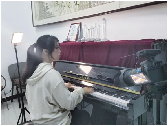 对于伴奏,外院的庞沛昀同学怀着对祖国的敬仰和深情,在文艺部与宣传部共同合作,利用yl9193永利集团会议室里的钢琴弹奏了《万疆》的旋律。