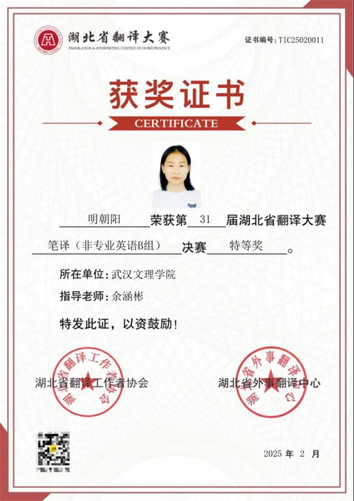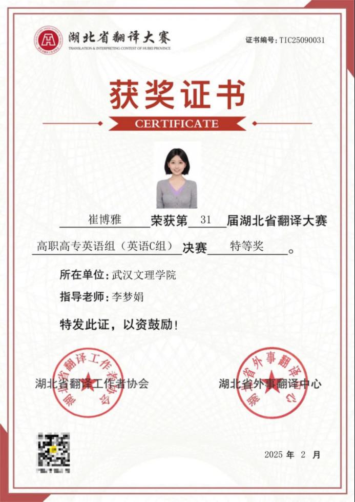 永利集团特等奖获得者崔博雅同学表示:“作为一名大一新生,我鼓足勇气报名参赛,通过日复一日的刻苦练习和词汇积累,最终实现了自我突破。在备赛过程中,我制定了‘三步走’计划,从夯实基础到提升技巧,再到实战模拟,每一步都稳扎稳打。在此过程中,我特别感谢学院老师的悉心指导和无私帮助。她的专业精神和耐心让我深受感动,也激励我在今后的学习和生活中更加努力和进取。”