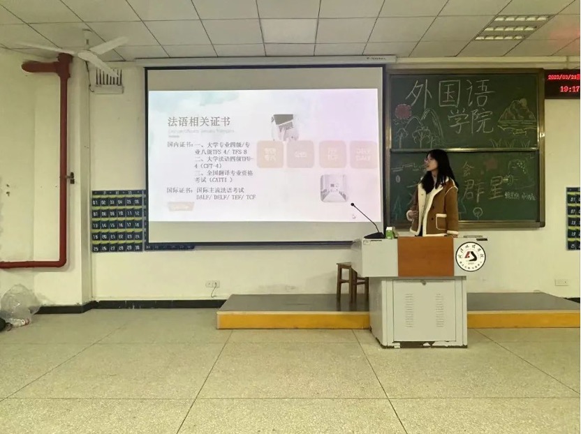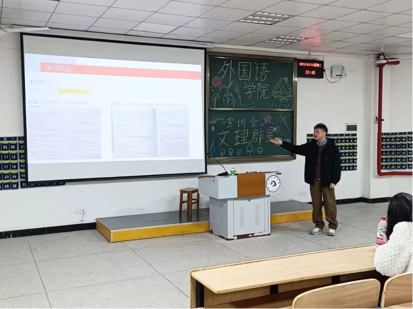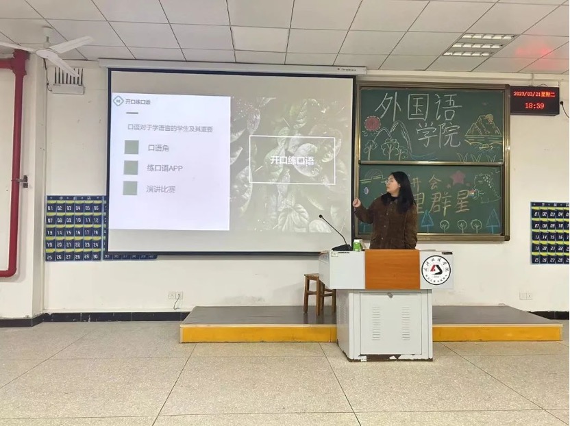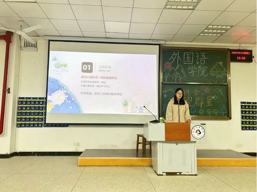 21级外语班鲍星燃学姐,荣获大学英语四级证书、职场英语证书和商务英语证书,现任yl9193永利集团分团委秘书部部长。“人生没有彩排,每天都是现场直播”,她用幽默风趣的方式打开了她的分享之旅,把学习分为主线任务和支线任务,而她的挑战副本就是平时所参加的各种活动和比赛。鲍星燃学姐积极乐观的分享了在面对各种挑战、学习时所给出的相关建议,同学们也在这种放松状态下学会了该如何平衡学习与生活。