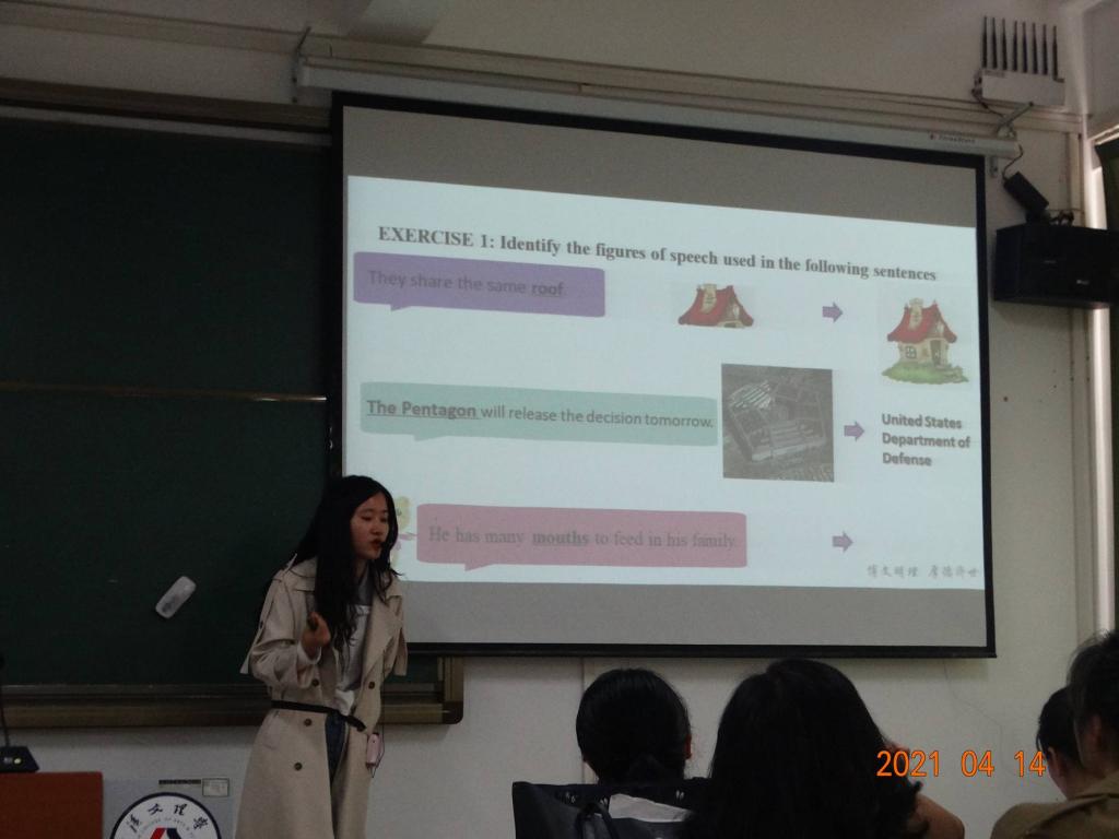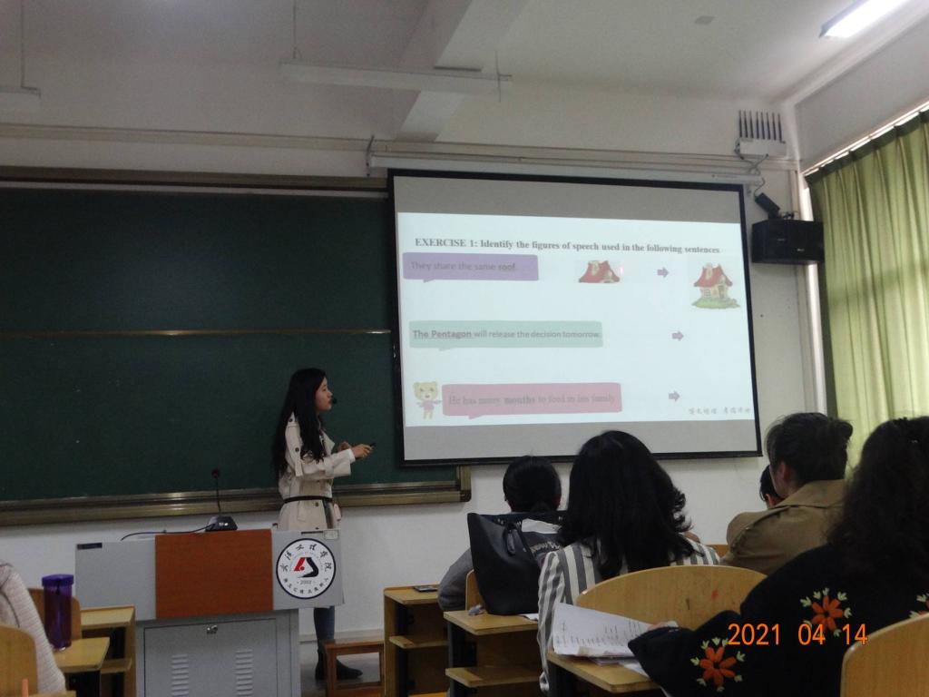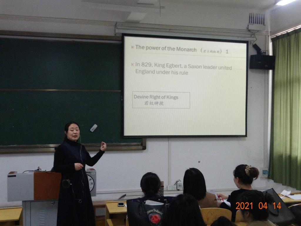 为推进及优化课堂教学,有效评估教师的课堂教学效果,促进我院教师的专业成长,yl9193永利集团于2021年4月14日在5栋教学楼213教室举办了一场教师讲课比赛。在这次讲课比赛中,共有12名教师参与比赛,其中英语系派出了王慧和汪玲两位老师。根据赛制规定,每位老师的比赛时间为15分钟,包括说课和讲课两个环节,我系的王慧老师的主题为“British Monarch”,汪玲老师的主题为“Figures of Speech”。两位教师凭借着扎实的基本功,生动的课堂效果赢得了评委和教师们的一致好评,最终顺利进入决赛。
