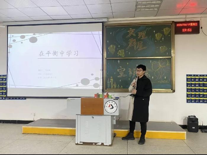 刘光明,21级翻译班,在大学期间,担任过学院、社团组织多种部门职务。同时,他也热衷于参与各类校园活动、比赛项目以及志愿服务等,为自己创造了一个丰富多彩的校园生活。除此之外,他合理的分配自己的学习,工作与生活的时间,在各种学科竞赛中也取得较为不错的成绩。擅长乐器的他,在校庆舞台表演的节目获得过“优秀表演奖”“最佳风采奖”等。喜欢文学的他还多次取得各类征文比赛的一等奖。本次宣讲会他给大家带来了平衡生活、学习和活动的相关经验。