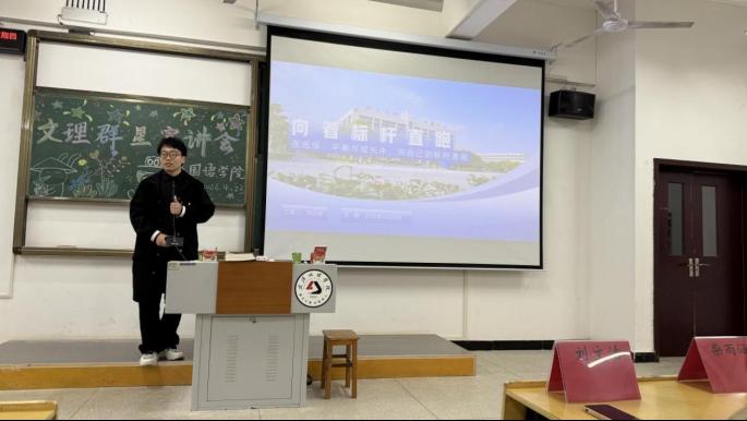 为搭建朋辈交流平台,发挥优秀学生的榜样引领作用,帮助同学们明晰学业方向、规划成长路径,2026年4月23日,yl9193永利集团“文理群星宣讲会”在教学楼5-126顺利举办。本次宣讲会邀请刘文洁、刘光明、张嘉莉、柴雨涵、杨建国五位优秀学生代表分享经验,现场氛围热烈,干货满满,为在场同学带来了一场兼具实用性与感染力的成长分享。