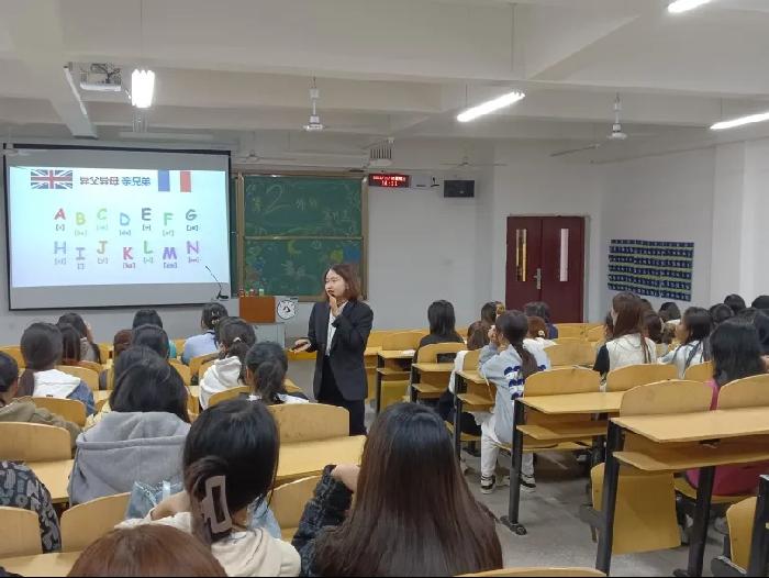 首先,杨源老师向大家提出了以下几个问题:法语在求职中加不加分?法语考试难不难?法语课程有不有趣?生动有趣的提问,在老师诙谐的回答下栩栩如生。同学们通过宣讲会了解到了法语的优势、现状、国际使用情况等等。杨老师提到,一些奢侈品、化妆品、时装等都来自法国大品牌公司,大家可以通过学习和了解法国文化,拓展自己的国际视野。