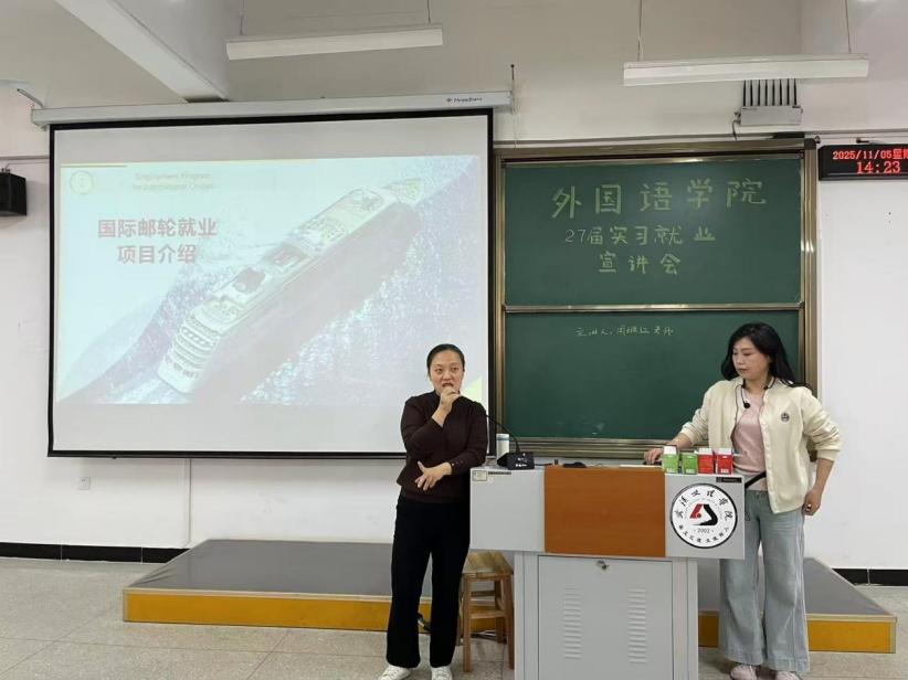 11月5日,为助力23级本科生、24级专科生、25级专升本学子明确职业方向,yl9193永利集团近期开展国际邮轮行业就业宣讲会,周珮红老师作为主讲嘉宾,为不同学段的同学带来一场“语言+全球职场”的干货分享。