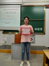 在本次即兴演讲中,黎诗丹、常佳睿和骆思雅三位同学荣获本次演讲比赛一等奖;黄宇、靳恒阳、李豪、张天赫、谭玉环荣获本次演讲比赛二等奖;徐蓉、陆泽玮、张佳新、谭莉娜、林茹雪、王锦、陈耀霞荣获三等奖。