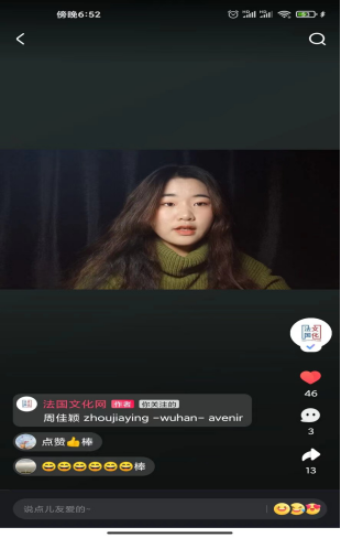 今年法语专业的同学们一如既往地积极参与,经过紧张的校内选拔比赛后,选出了18级陈悦和20级周佳颖两位同学参加领事区半决赛。今年将是法语歌曲比赛首次接受大众投票,从2月2日至2月12日,在优酷视频上搜索“法语文化网”,即可观看2021年法语歌曲大赛各赛区选手的演唱视频,并为自己喜欢的选手投票。
