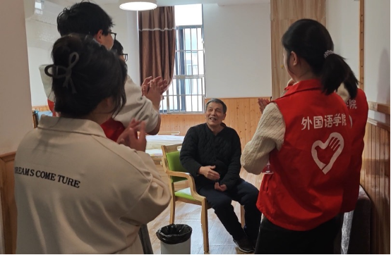活动现场除了贴心的护理服务,志愿者们还收集了6位老人的青春故事,他们耐心倾听老人讲述往昔的故事,那些岁月沉淀下的回忆在轻松的氛围中被娓娓道来。颐养院负责人感慨道:“这些孩子让沉寂的走廊都有了欢快的节奏”。老人们脸上洋溢着幸福的笑容,仿佛回到了那些美好的时光。志愿者们也分享着校园的趣事,教老人用英文表达“你”“我”“她”,欢声笑语在颐养院里回荡,为老人们平淡的生活增添了一抹亮色。
