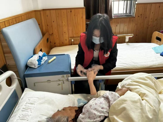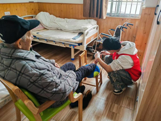 3月2日,志愿者们又将爱心延伸到了校外。他们怀揣着热忱与爱心,前往长江新区祈盛新城商业区同寿堂颐养院,为老人们送去温暖与关怀,00后志愿者们单膝跪地,为老人们修剪出春日专属的"爱心甲型"。