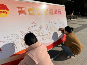 “缠龙绕线”项目也备受大家喜爱。参与者们根据团史的重要事件节点,将手中的毛线幻化成栩栩如生的龙形艺术品。项目展示了参与者们的艺术才华,更体现了他们对革命历史的深刻记忆和对新时代的美好憧憬。