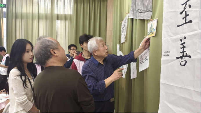 此次“墨韵飘香,书香校园”活动,为学子们构筑了书画艺术展示,深度挖掘和展现了传统文化的独特魅力与深厚底蕴。青年学子携手老年艺术家,一起驻足,以涵养文学与艺术修养促进中华文化在社会与学校之间的深度传承与创新弘扬。
