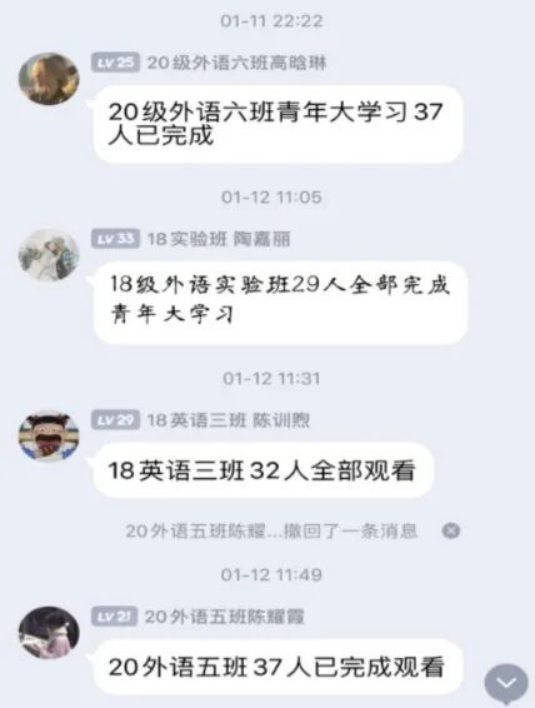 要求团员放假不放松学习,坚持打卡青年大学习,完成放假后的第十季最后两期。