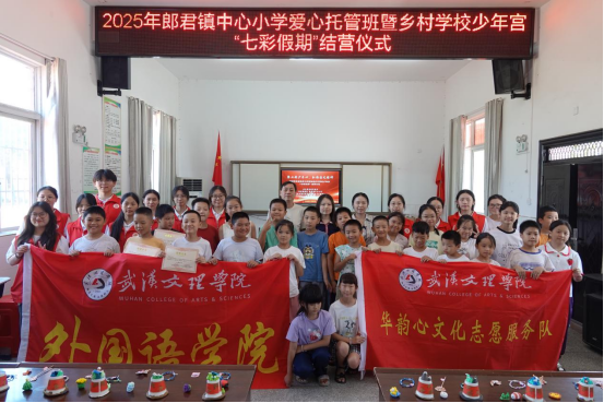 7月25日上午,应城市郎君镇中心小学“聚七彩少年心,弘扬国之精神”暑期托管班结营仪式圆满落幕。在为期18天的“七彩假期”里,永利集团华韵心文化志愿服务队携手郎君镇中心小学,为当地学生带来了一段充实而有意义的暑期时光。