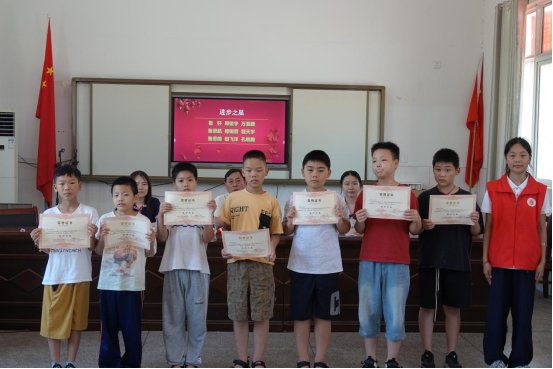 郎君镇中心小学兰还军校长在致辞中高度评价了托管班的成效,对孩子们的求知热情和志愿者们的辛勤付出给予了特别表扬。他鼓励同学们继续保持良好习惯,以饱满的精神状态迎接新学期的挑战。在热烈的掌声中,活动进入颁奖环节,每一位同学都收获了属于自己的荣誉,这不仅是对他们暑期努力的肯定,更是对未来的期许。